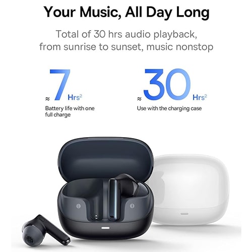 Feel every beat of your soundtrack with the Baseus Bowie M2s earbuds. Lightweight build quality gives you a comfortable wear experience. Reduces noise for up to 48dB to keep you connected with your favorite tracks. Four mics with environmental noise cancelling enabled provides amazing sound for your music. Listen to every acoustics perfectly with Baseus Immersive Spatial Acoustics. Long battery life gives you worry-free sound experience for longer hours.