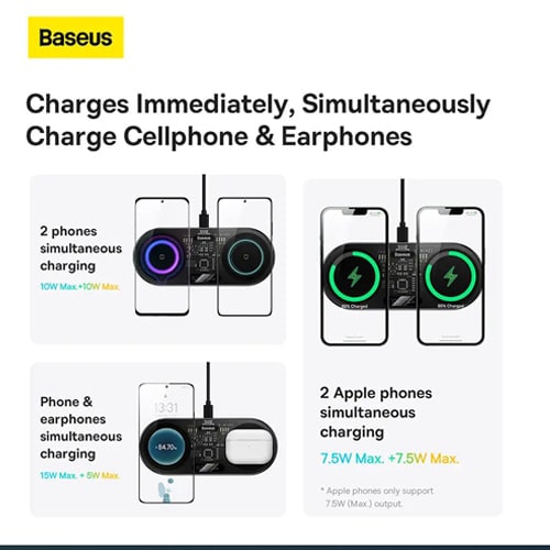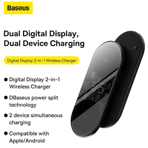 Stay one step ahead in charging your devices with our Baseus Digital LED Display 2-in-1 Wireless Charger 20W. With its dual-device charging feature, you can charge two devices simultaneously.