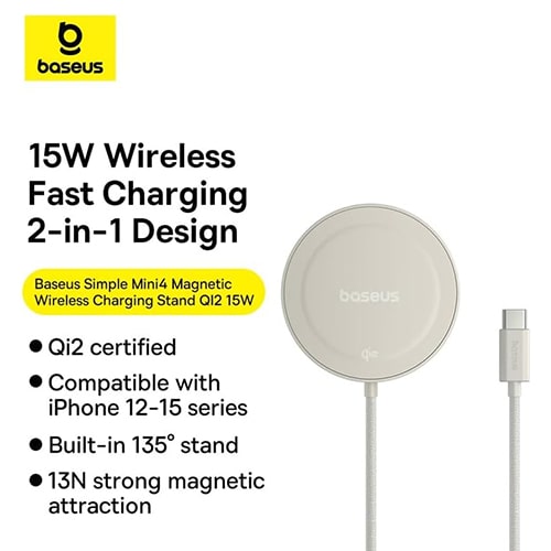 ✅বেসিউস Qi2 15W সিম্পল মিনি4 ম্যাগনেটিক ওয়্যারলেস চার্জিং স্ট্যানইউনিভার্সাল ওয়্যারলেস চার্জার।