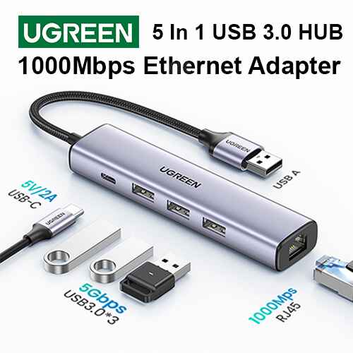 UGREEN CM475 USB 5 In 1 USB 3.0 Hub With Ethernet Adapter Price in BD.