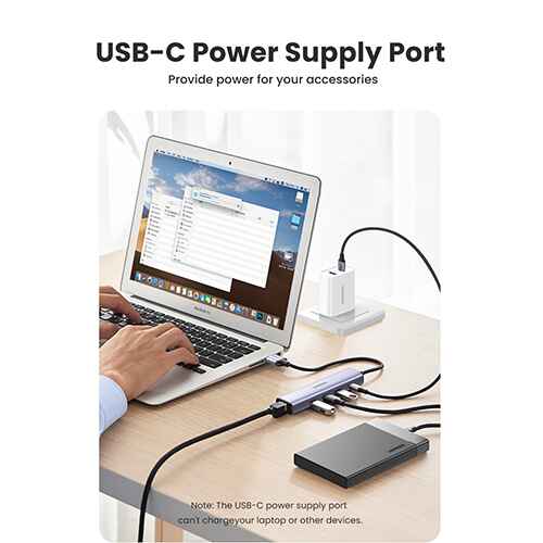 This UGREEN 5-in-1 USB 3.0 Ethernet Hub contains almost all USB-A devices, such as MacBook, Mac Mini, Surface, XPS, etc. No driver is required if using Windows 11/10/8.1/8, Mac OS, and Chrome OS; for Windows XP/7/Vista and Linux, a driver installed is needed. The USB-C Power Supply port supplements power when using high-power devices, such as a hard disk enclosure or multiple devices, to ensure stable performance. UGREEN CM475 5-IN-1 Multifunctional Type-C USB Hub provides stable and versatile connectivity for devices.