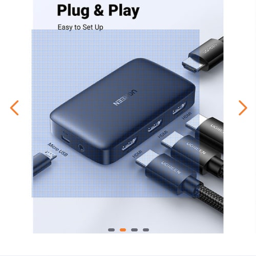 UGREEN CM332 (80125) 4K 3 In 1 Out HDMI Switcher enables you to connect three HDMI devices and transmit the video and audio signals to an HDMI output device. This HDMI switch box provides two easy switching methods: a manual switch and a remote that can turn on/off a selected device and its output, so there is no need for constant plugging of the HDMI cables. Seamless connection and use of various products whether for business, entertainment, or multimedia can be managed through this 3-port HDMI switch. With an IR remote control included, you easily switch HDMI channels from a distance of up to 15 feet without standing up from the comfort of your chair. For better performance of the infrared system, We kindly request to ensure that the infrared receiver part of the product is aligned towards the remote without any barrier in between.