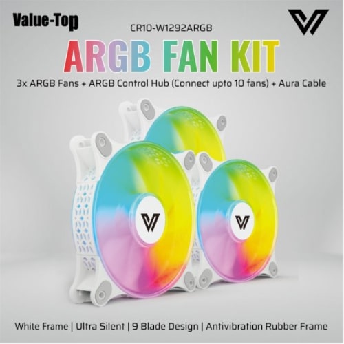 Value-Top CR10-1292ARGB 3 in 1 White ARGB Casing fan